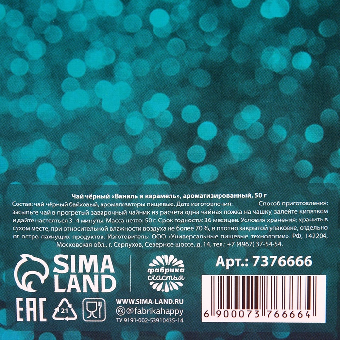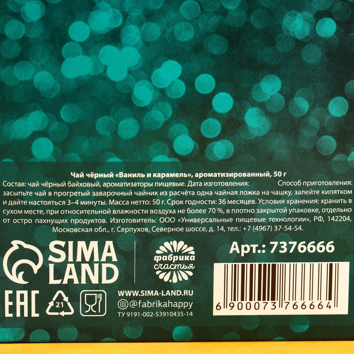 Чай подарочный чёрный «8 Марта», вкус: ваниль и карамель, 50 г 7 фото