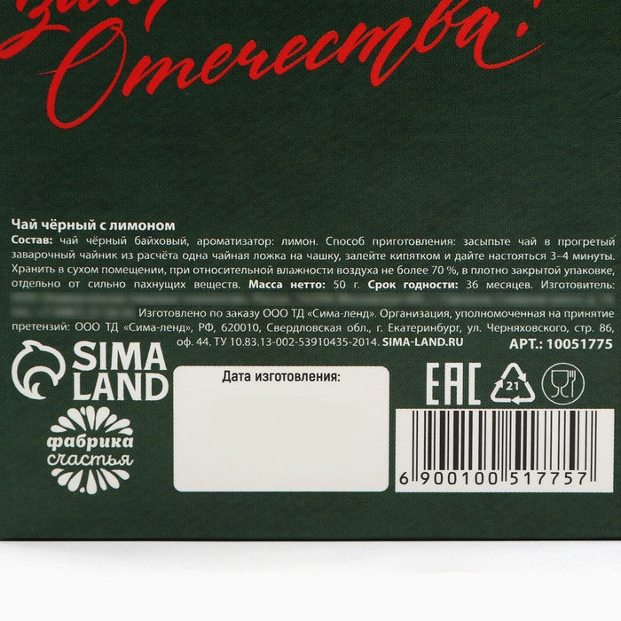 Чай подарочный «23 февраля», вкус: лимон, 50 г 8 фото