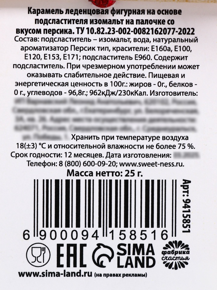 Леденец-трость «Год без забот», вкус: смородина, 50 г 5 фото