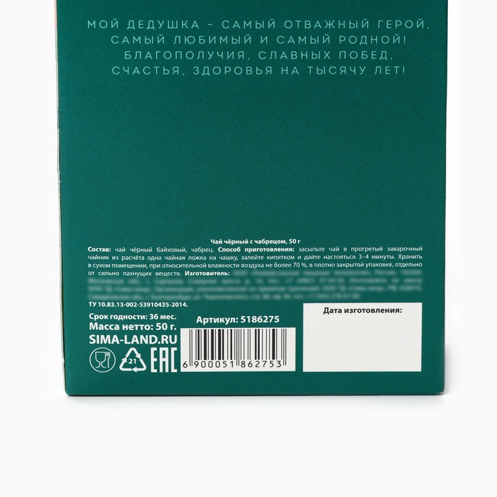 Чай подарочный «Лучшему дедушке», вкус: чабрец, 50 г 7 фото