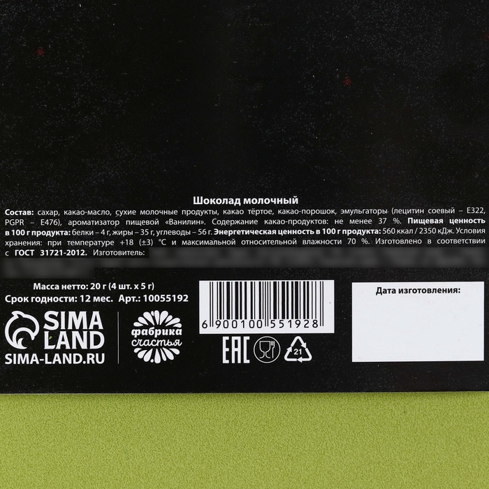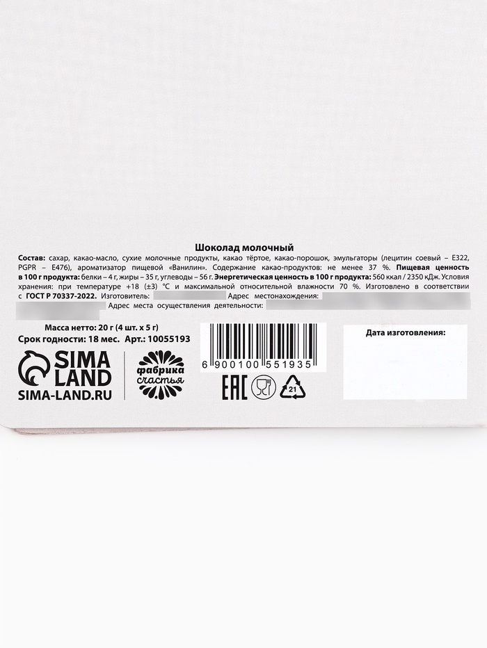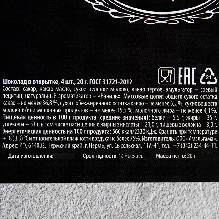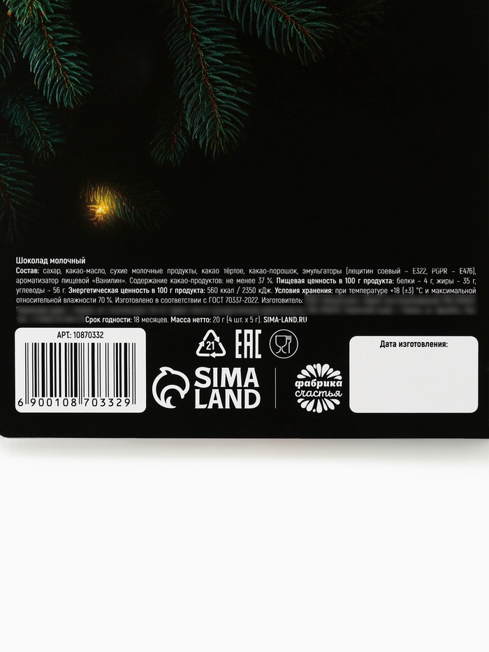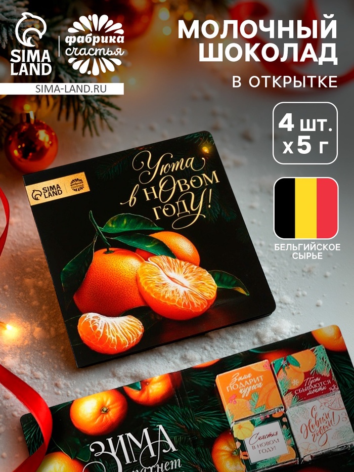 Шоколад мини в открытке «Уюта в Новом году», 5 г × 4 шт. 6 фото
