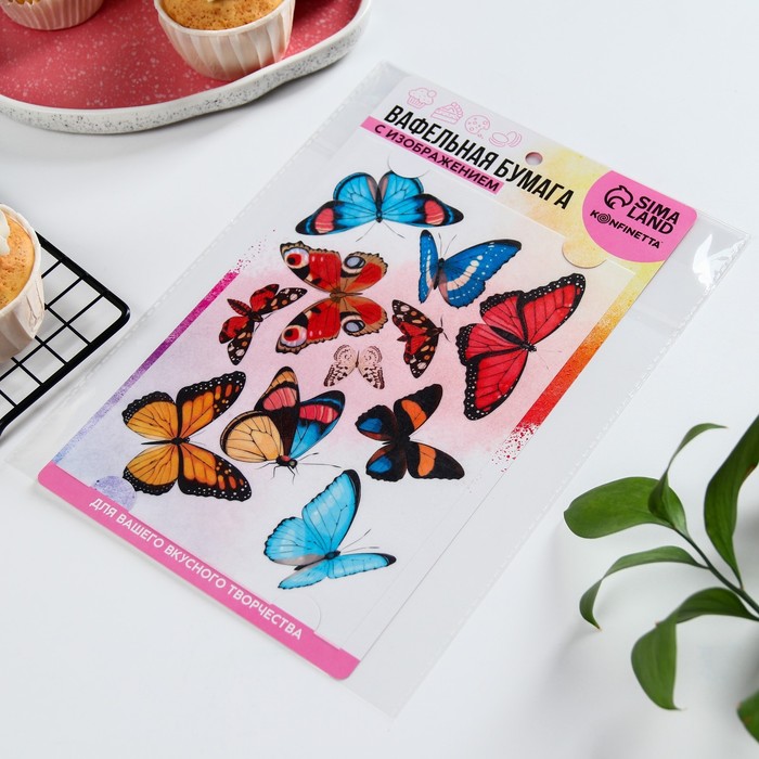 Вафельные картинки съедобные «Бабочки» для капкейков, торта KONFINETTA, 1 лист А5 6 фото