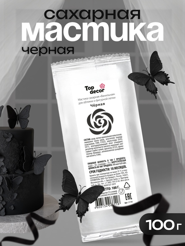 Мастика сахарная, ванильная, чёрная, 100 г 3 фото