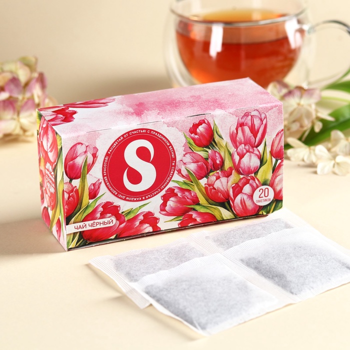 Чай подарочный чёрный «Поздравляю с 8 Марта», 40 г (20 пакетиков × 2 г). 6 фото