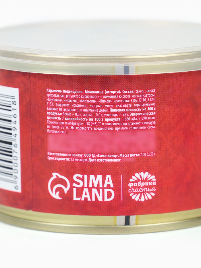 Монпансье «Моё золотце», карамель леденцовая в консервной банке, 140 г 5 фото