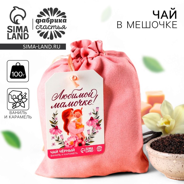 Чай подарочный «Любимой мамочке» в подарочном мешочке, вкус: ваниль и карамель, 100 г 7 фото