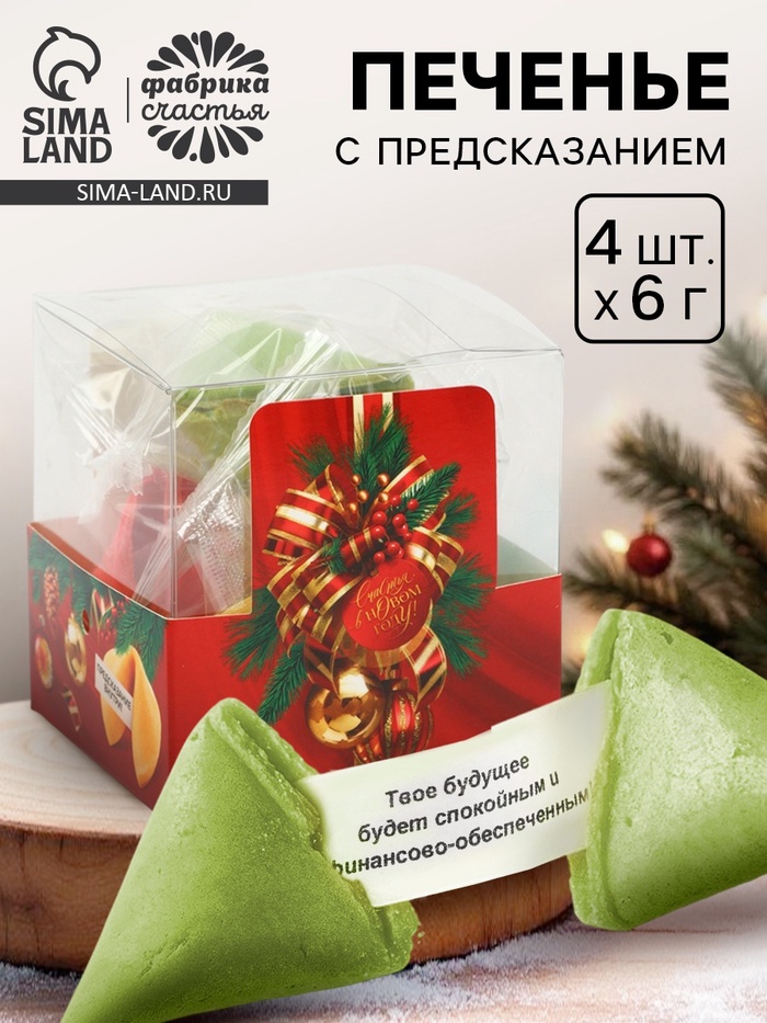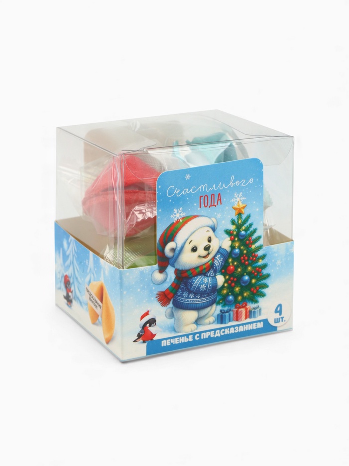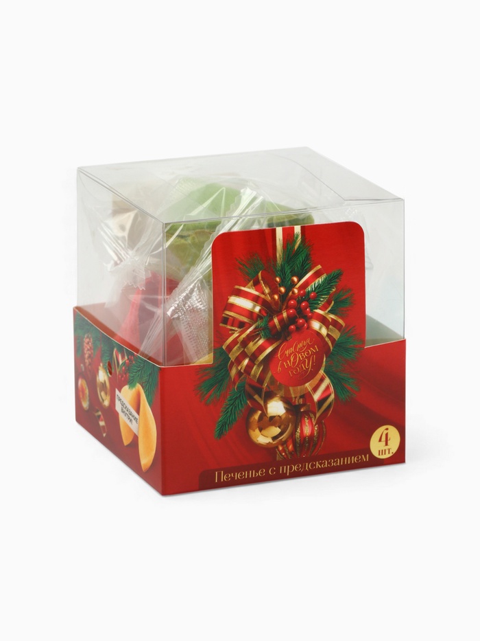 Печенье с предсказанием цветное в подарочной коробке «С новым годом», 4 шт. 5 фото