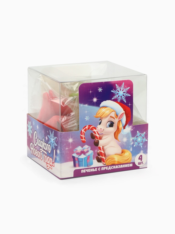 Печенье с предсказанием цветное в подарочной коробке «Сладкого нового года», 4 шт. 5 фото