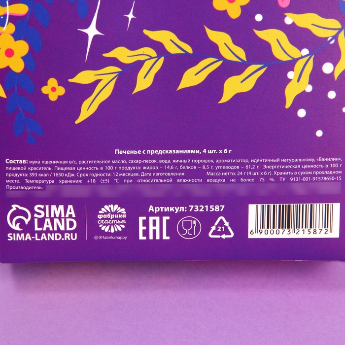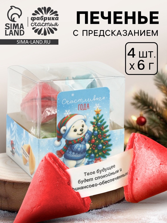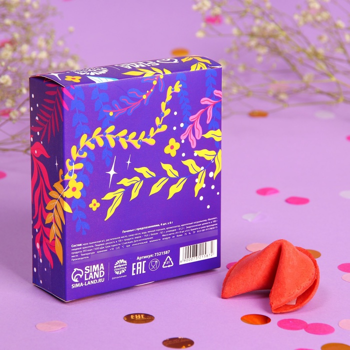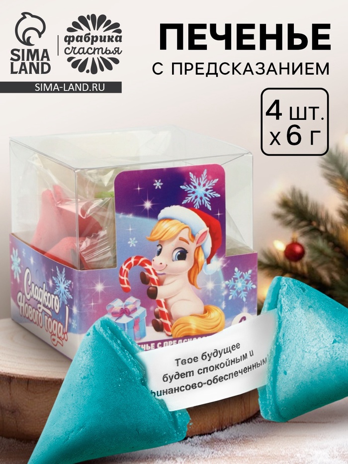 Печенье с предсказанием цветное в подарочной коробке «Счастливого года», 4 шт. 5 фото