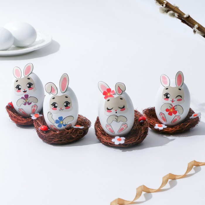 Пасхальный декор яиц «Зайки» на пасху, 14.5×15×2 см 6 фото