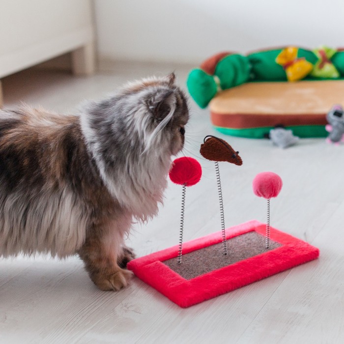 Игрушка для кошек с 3 дразнилками и когтеточкой, 27×15.5×25 см, микс цветов