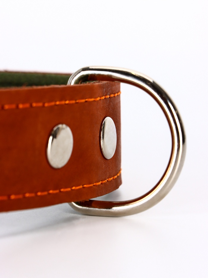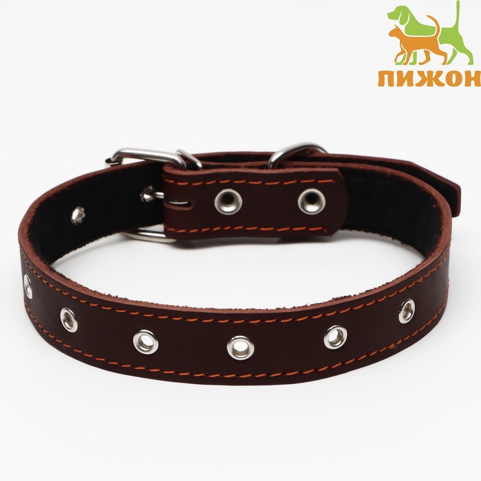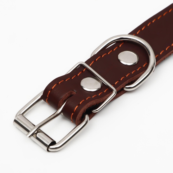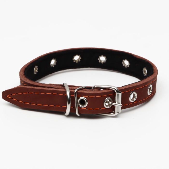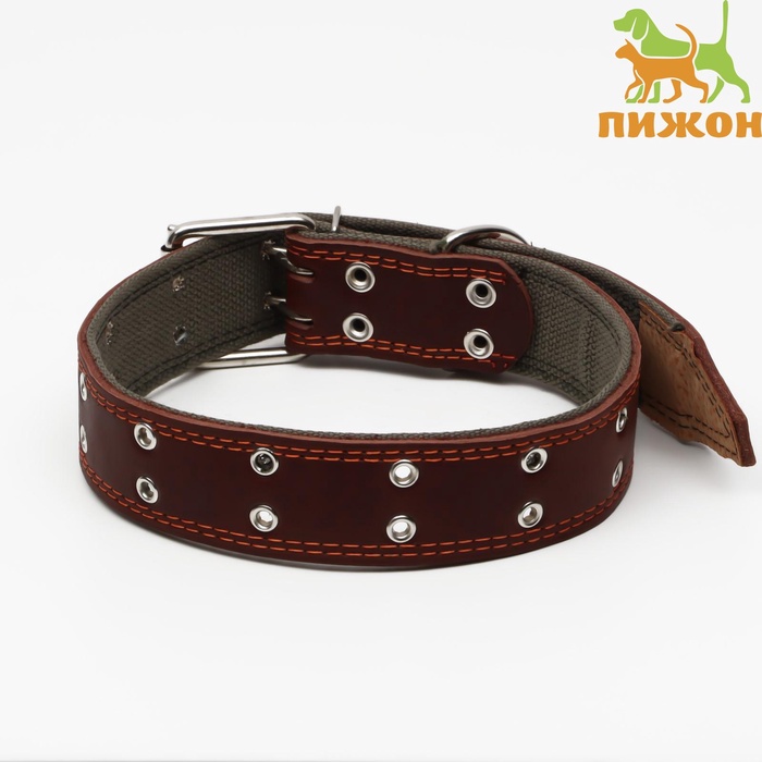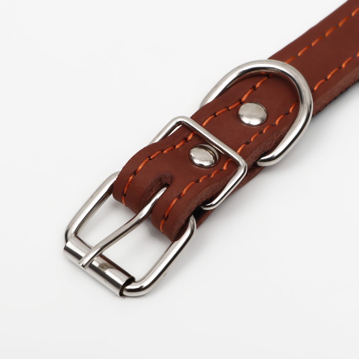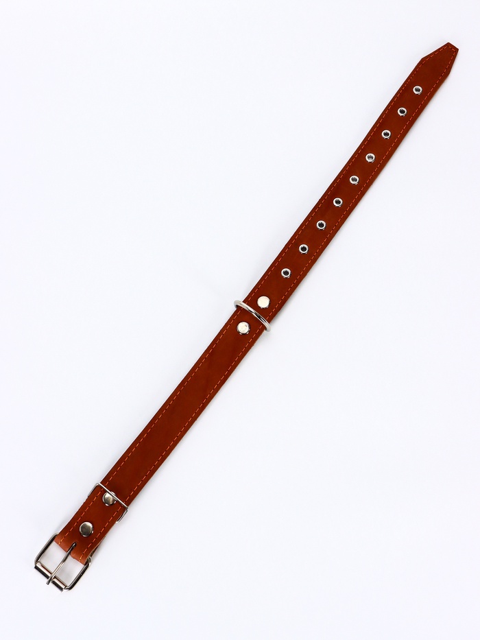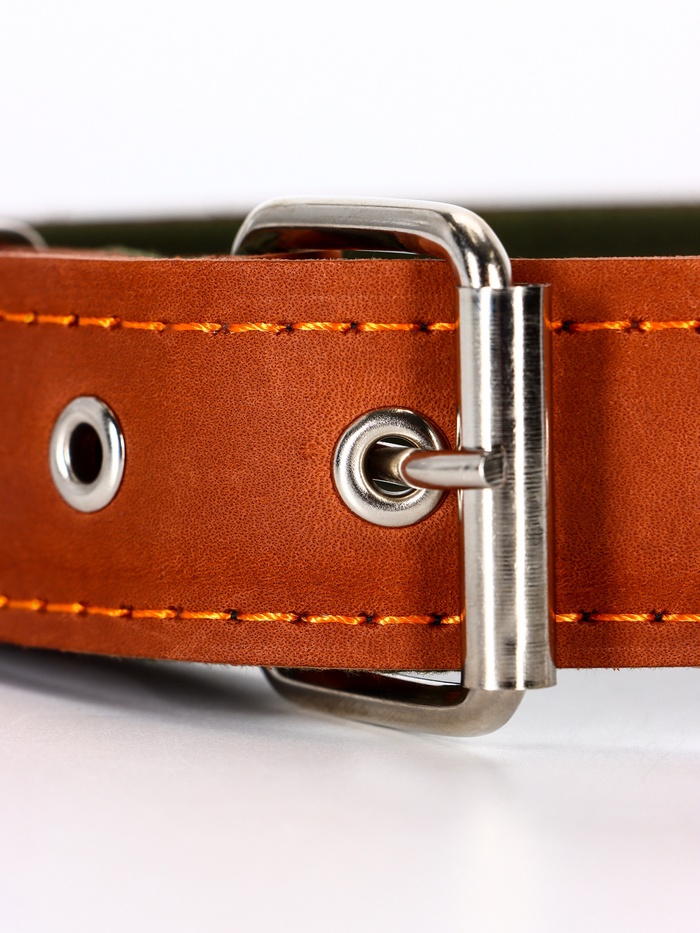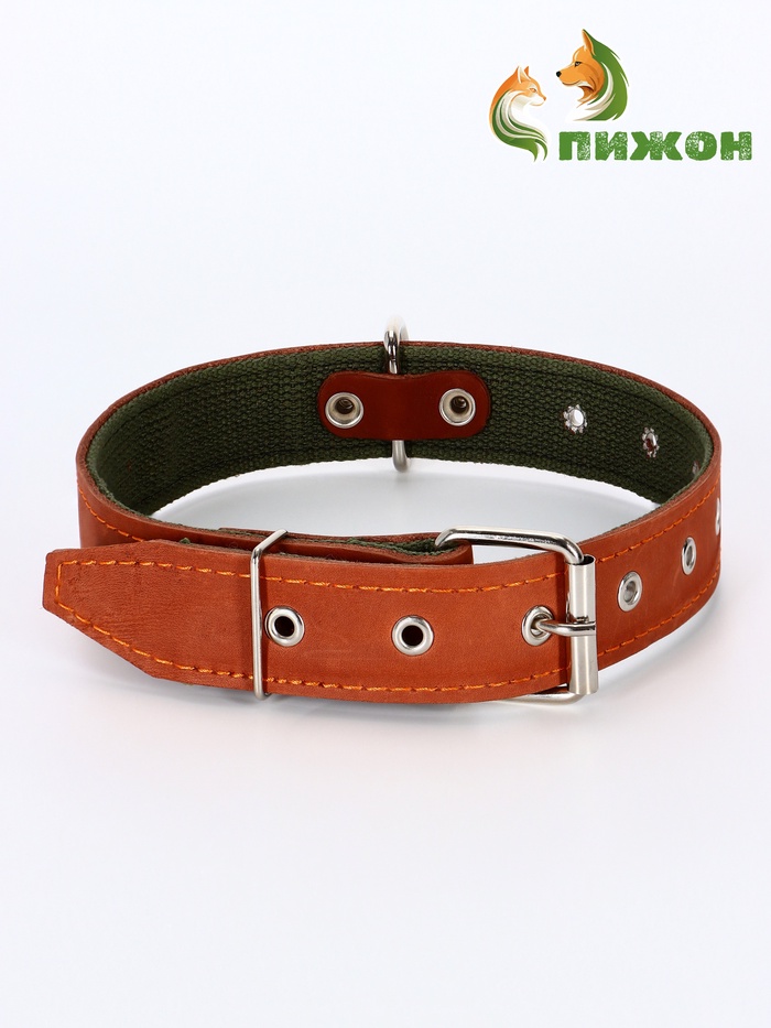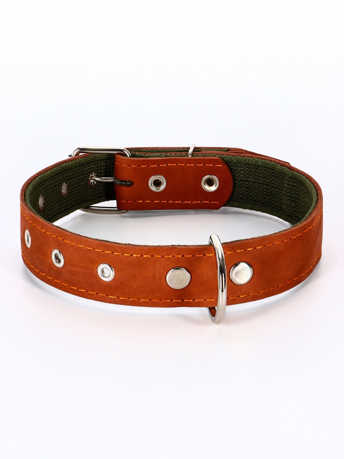 Ошейник комбинированный безразмерный, кожа/брезент, 65×3.5 см, ОШ 31-61 см, коричневый 9 фото