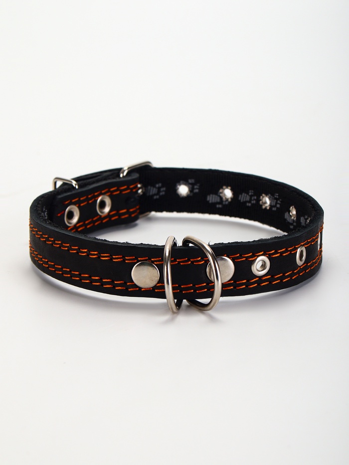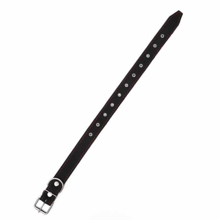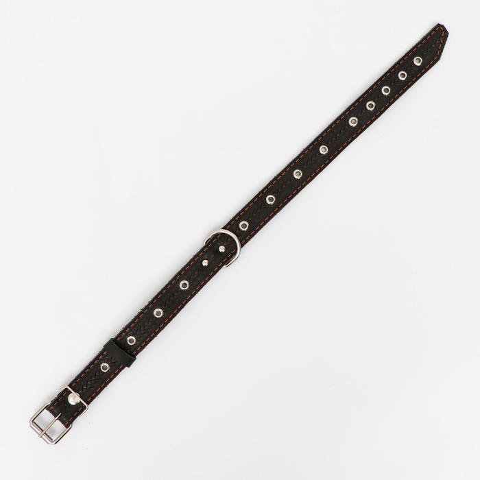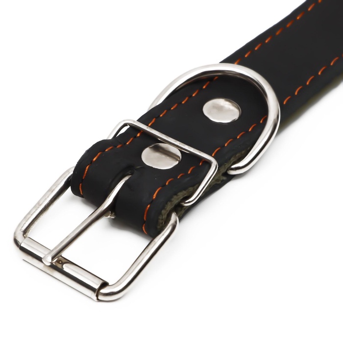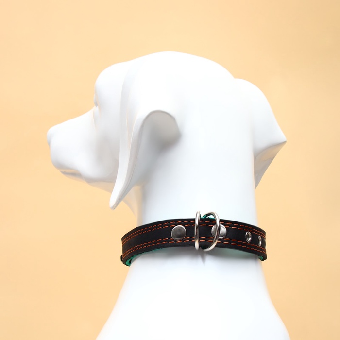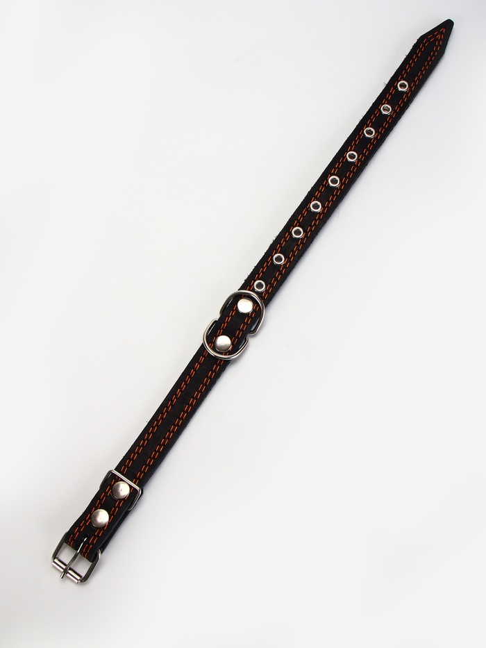 Ошейник кожаный усиленный капроном с полукольцом, 55×2.5 см, ОШ 27-53 см, чёрный 10 фото