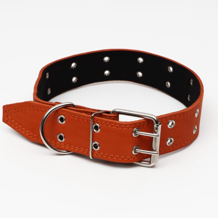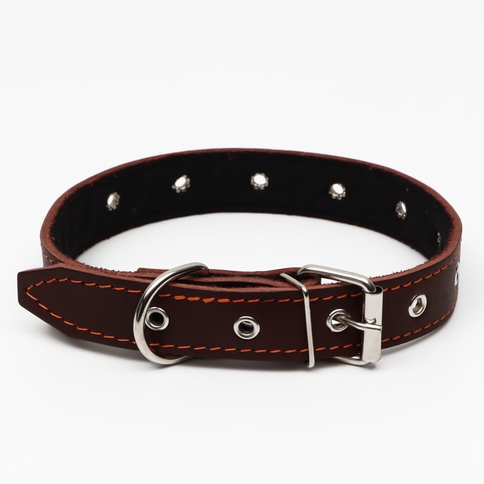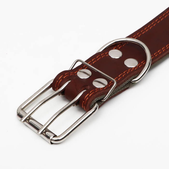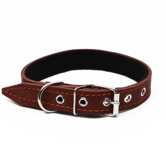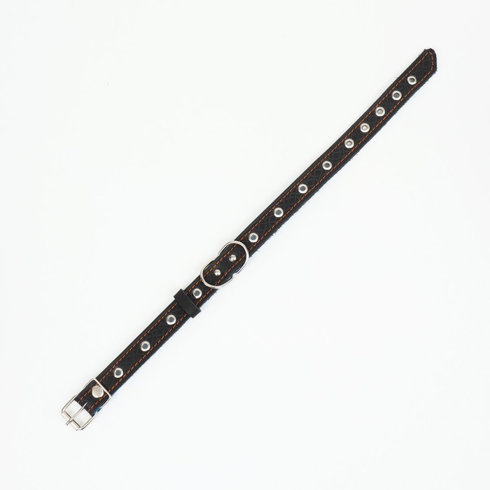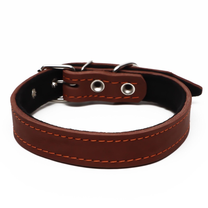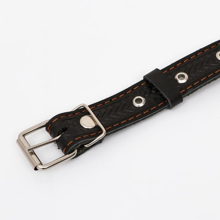 Ошейник кожаный усиленный капроном с полукольцом, 55×2.5 см, ОШ 27-53 см, чёрный 10 фото