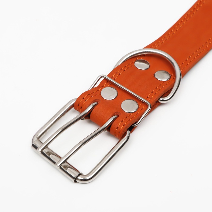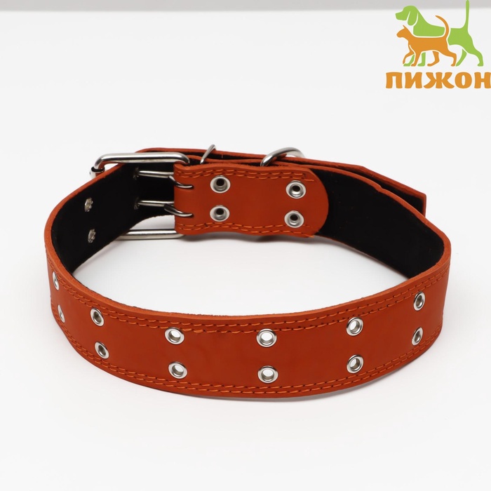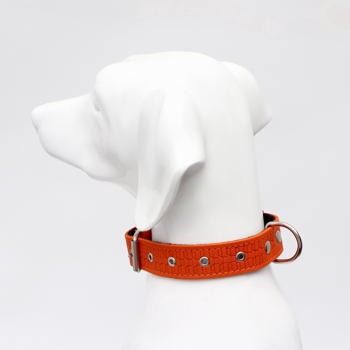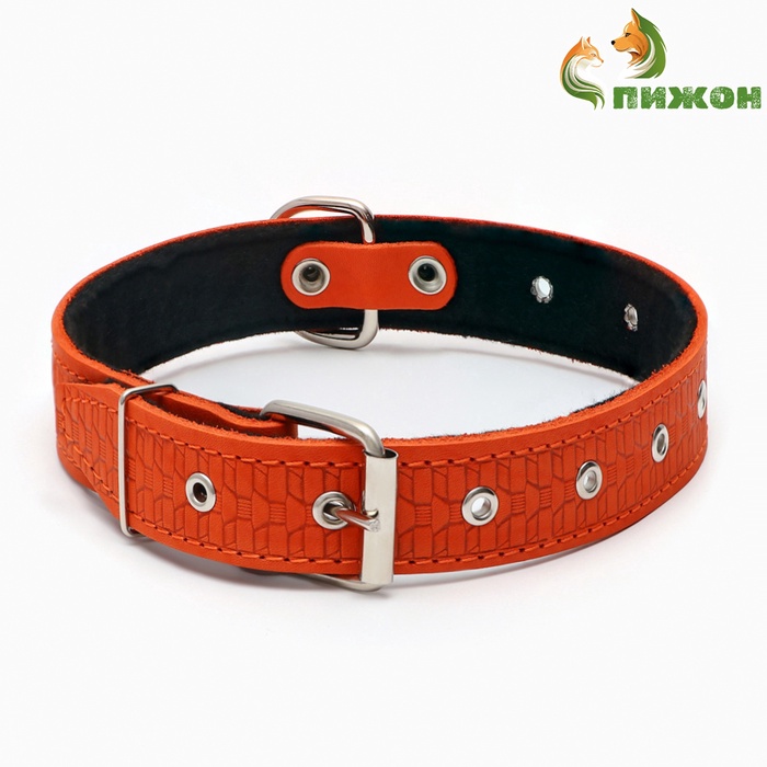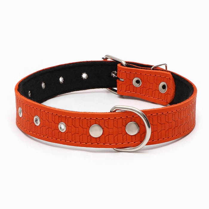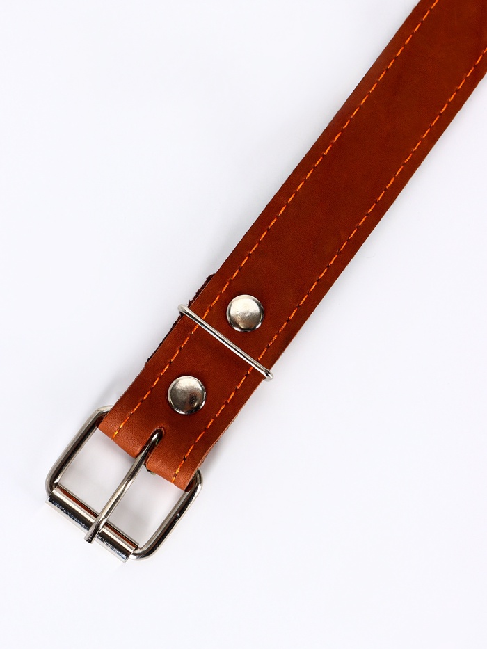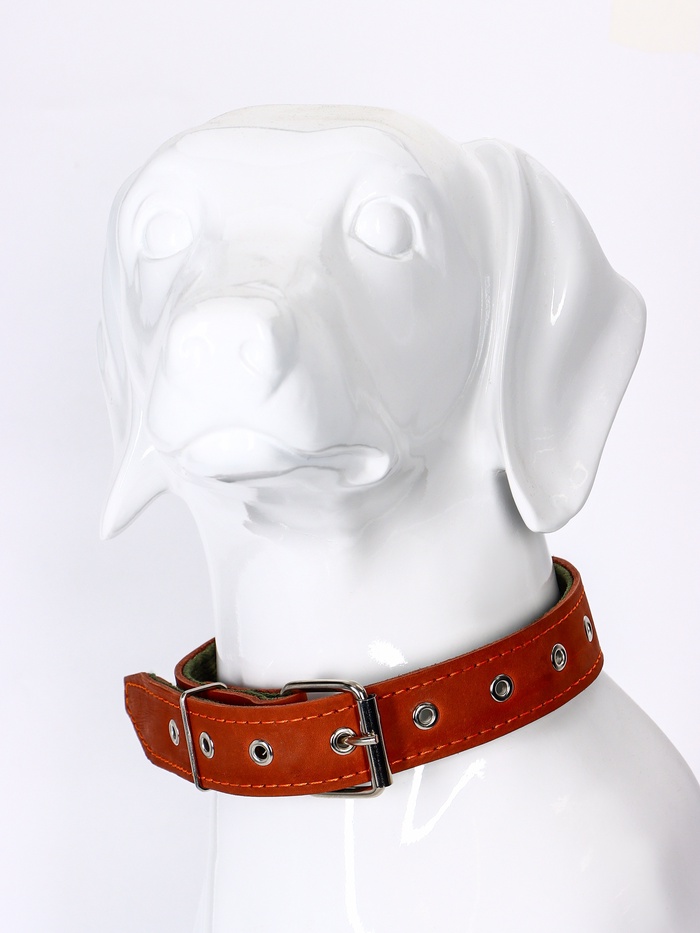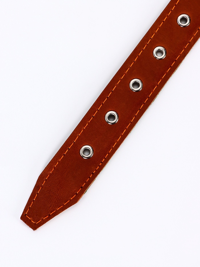 Ошейник кожаный тисненый на фетре, безразмерный, 67×3.5 см, ОШ 31-60 см, рыжий 6 фото