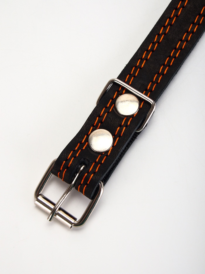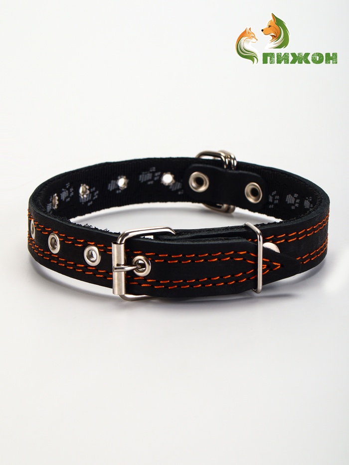 Ошейник комбинированный безразмерный, кожа/брезент, 65×3.5 см, ОШ 31-61 см, чёрный 5 фото
