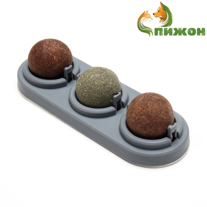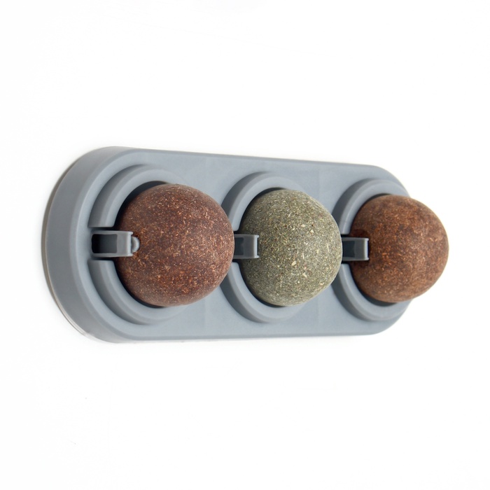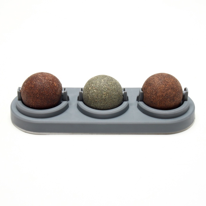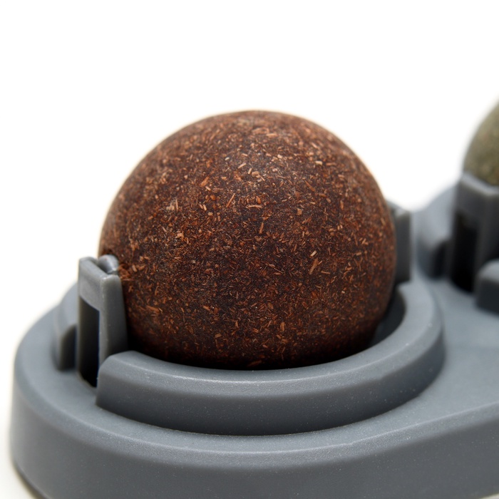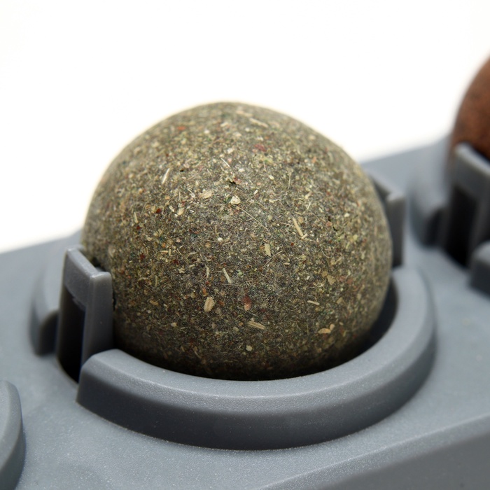 Игрушка для кошек из кошачьей мяты «Вращающиеся шарики» на основании,14×6 см, серая 10 фото