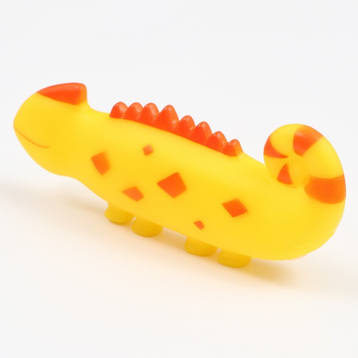 Игрушка для собак «Хамелеон», 19 см, пищащая, винил, жёлтая 5 фото