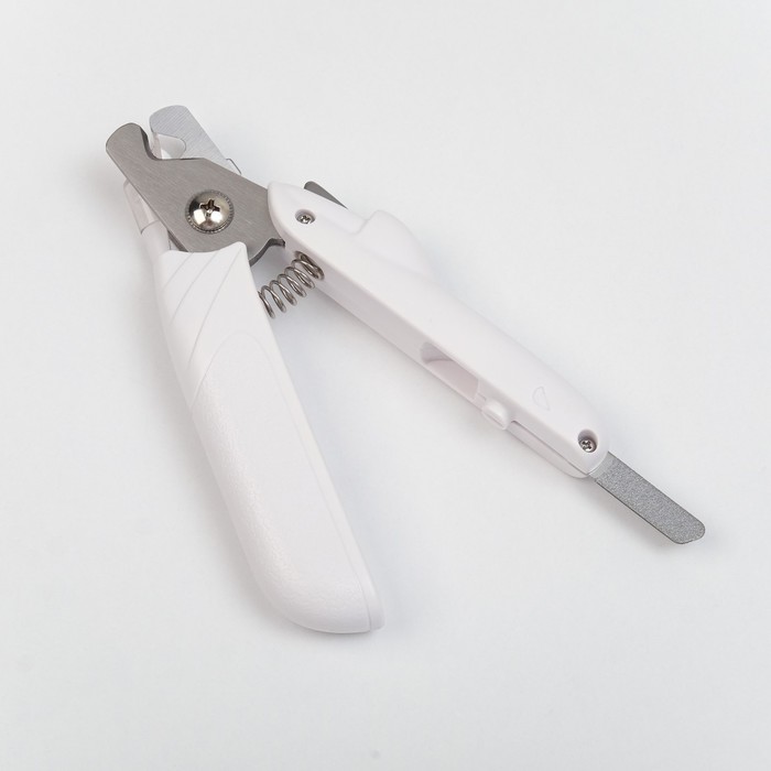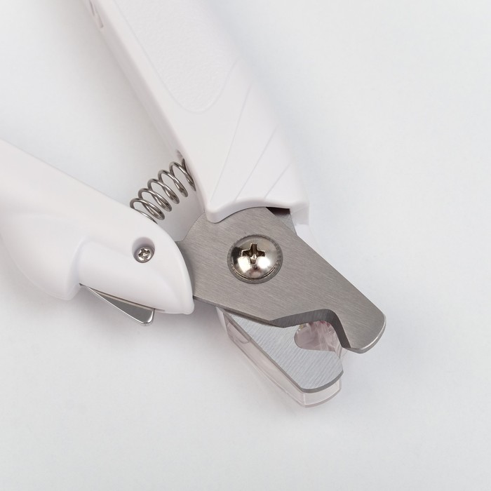 Ножницы-когтерезы «Пижон» Premium изогнутые, с упором для пальца, бело-розовые 3 фото