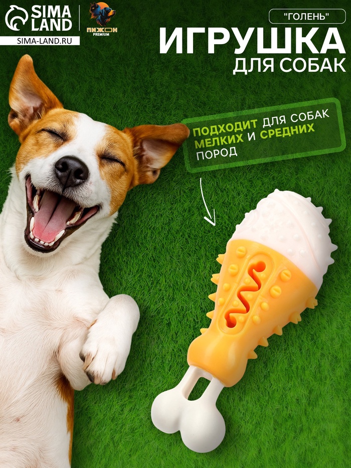 Игрушка под лакомства для собак «Голень» Пижон Premium 17 см, TPR+нейлон, желтая/белая 8 фото