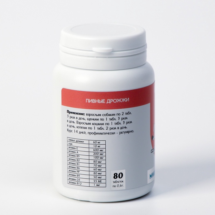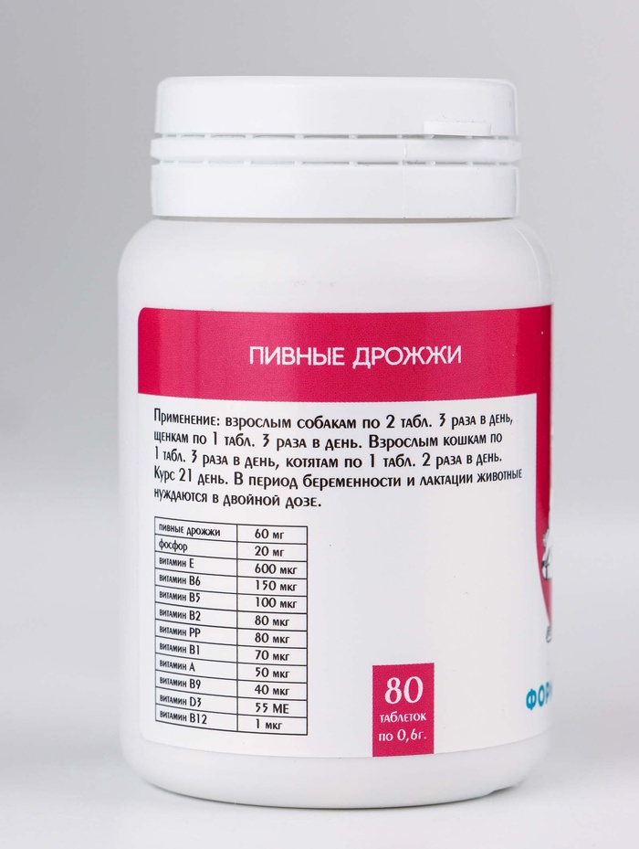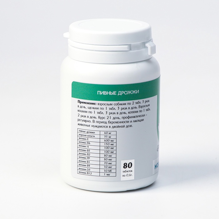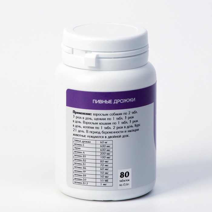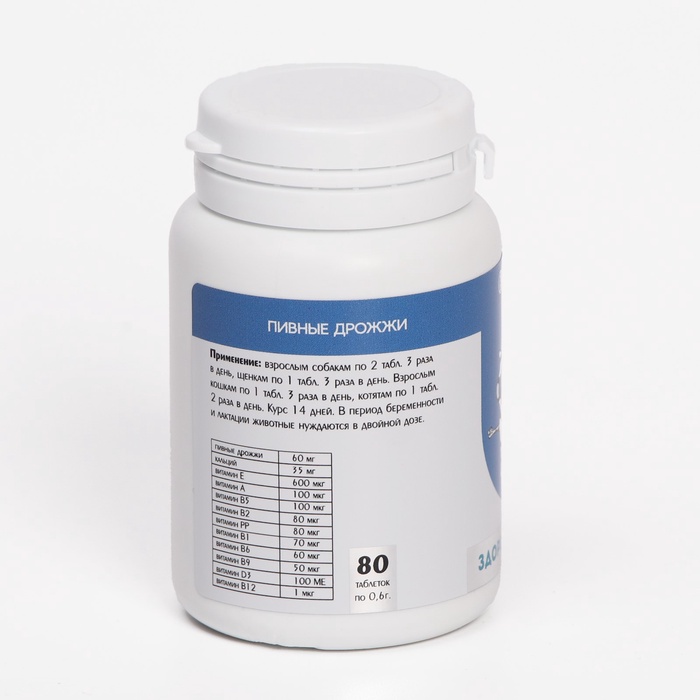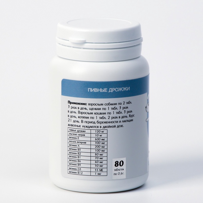 Пивные дрожжи для кошек и собак, очищенные, 80 таблеток 4 фото