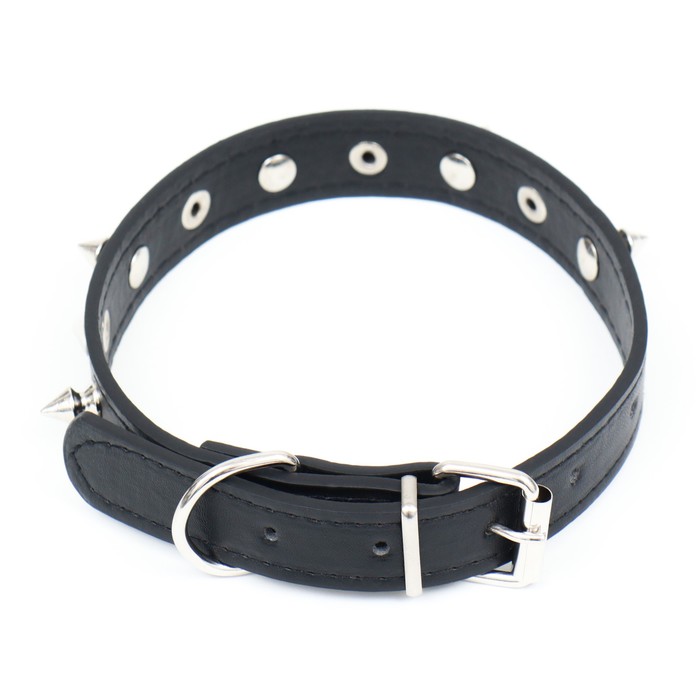 Ошейник «Лион» с шипами, 45×2 см, ОШ 34-40 см, искусственная кожа, чёрный 6 фото