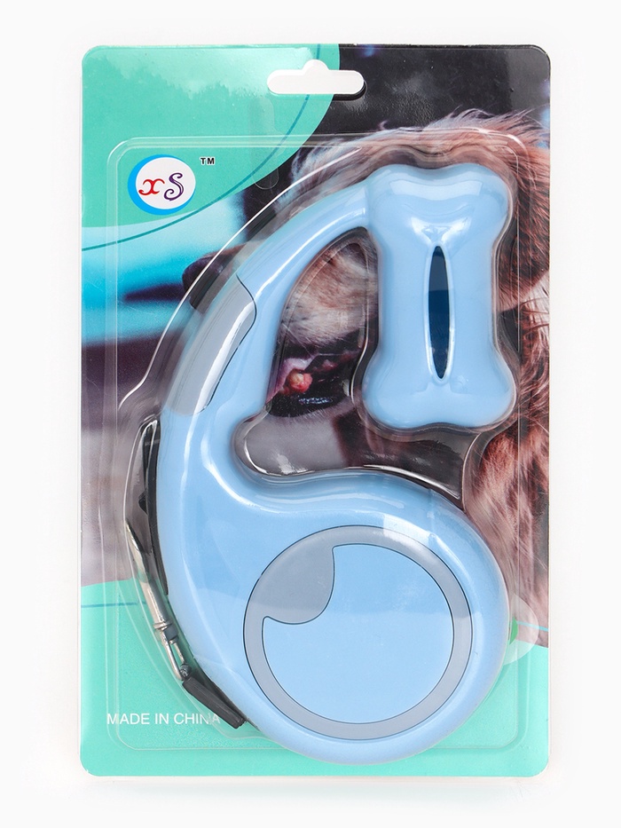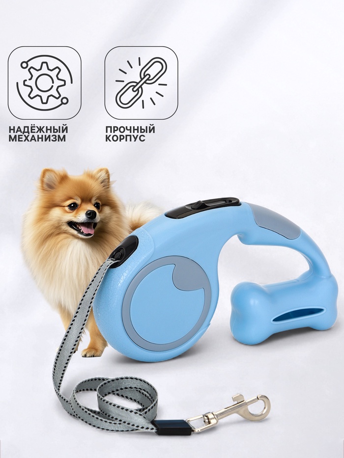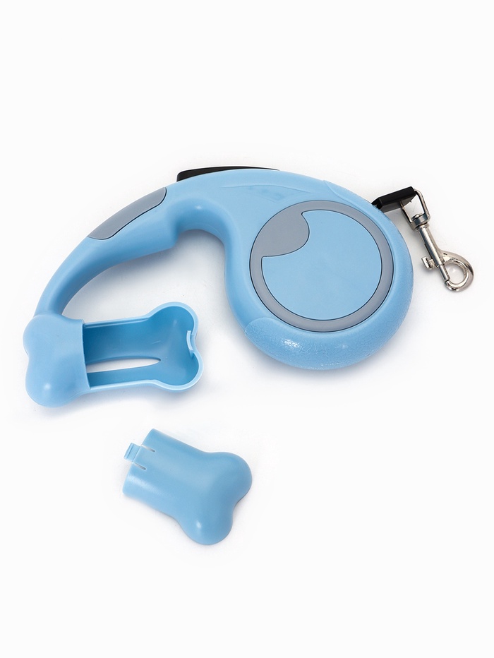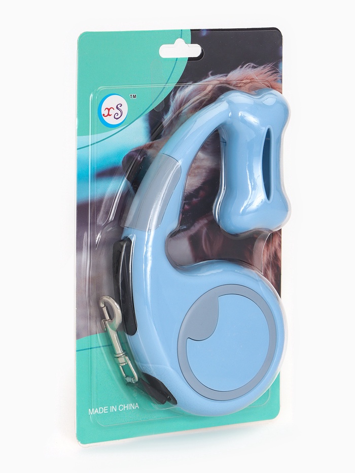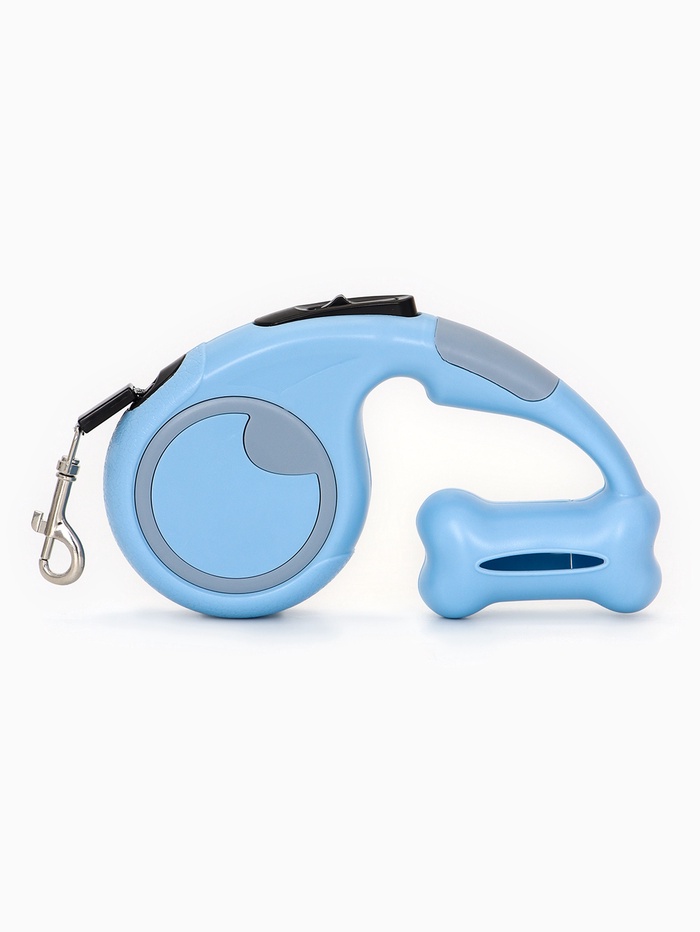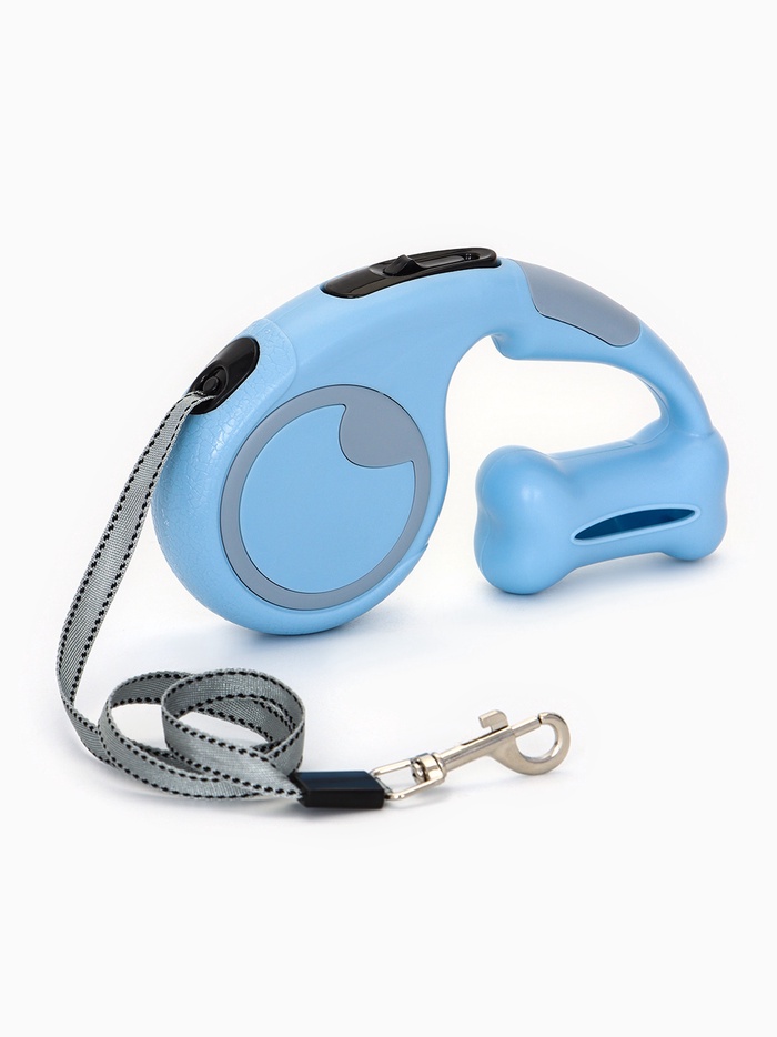 Рулетка - поводок «Косточка», 3 м, с контейнером для пакетов, пластик, голубая 10 фото