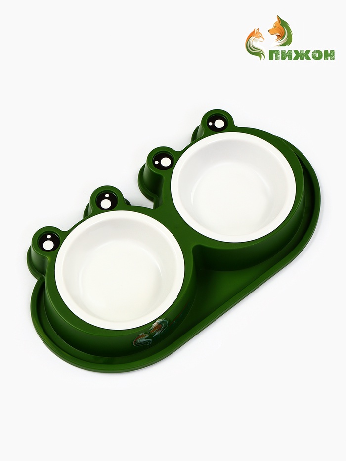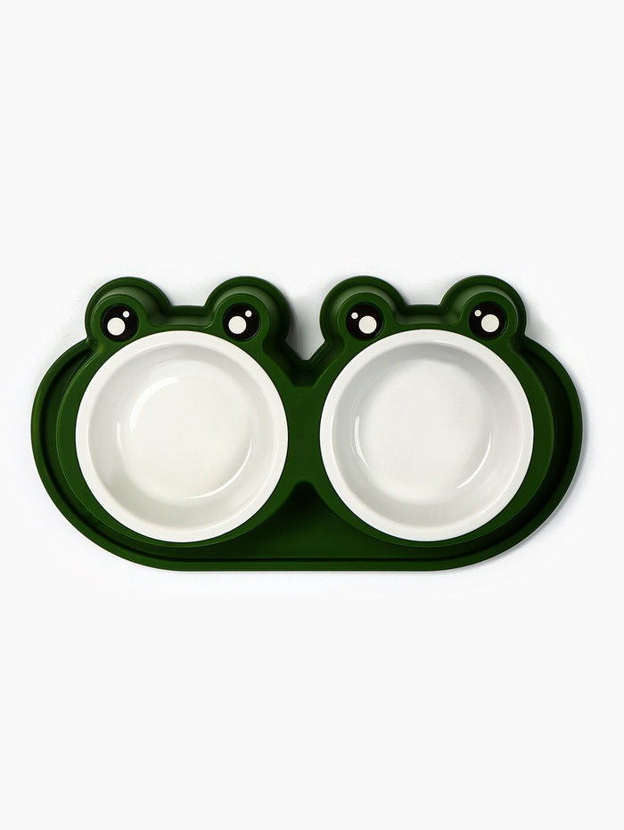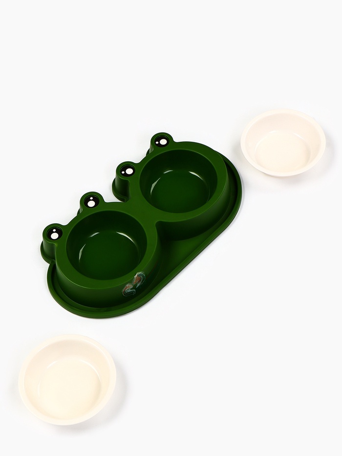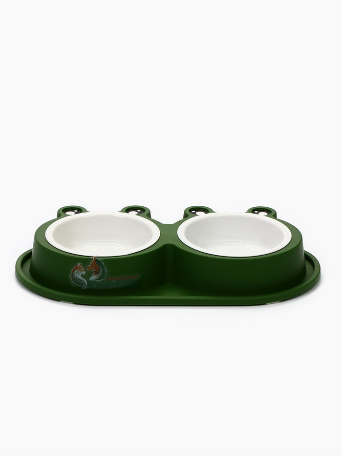 Миска двойная, 160 мл, 29.5×14×4 см, фигурная, пластик, зелёная 7 фото