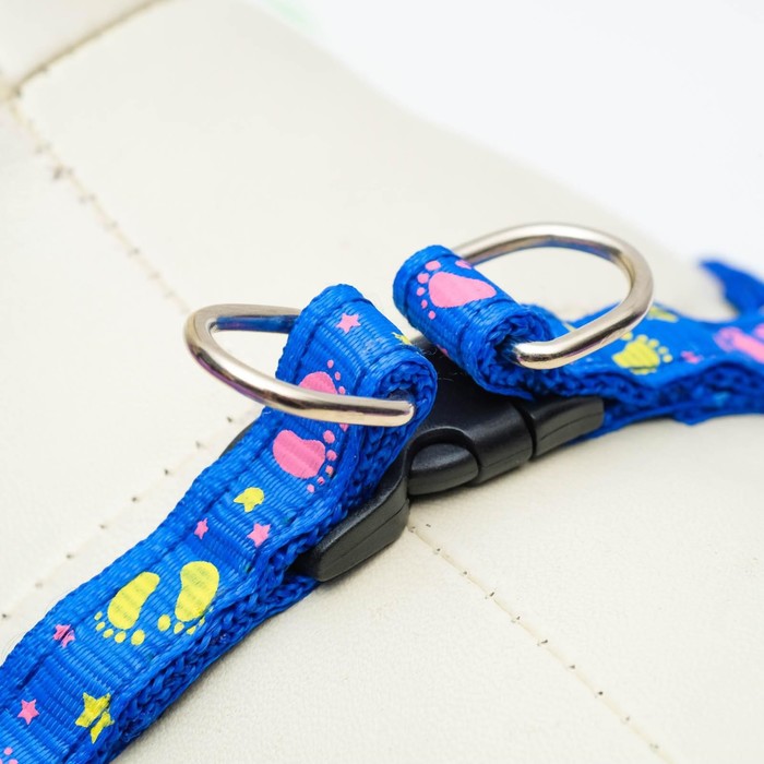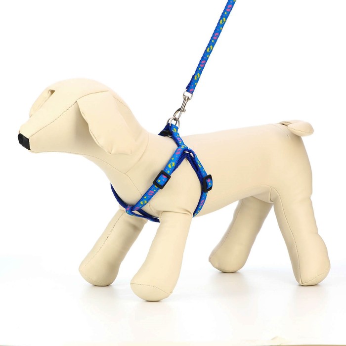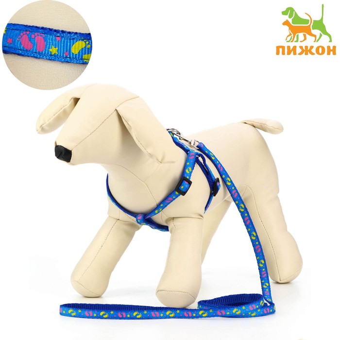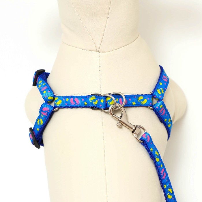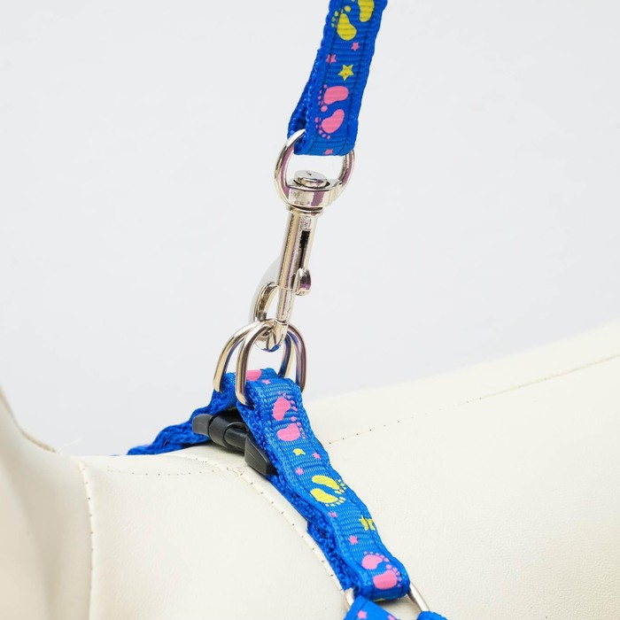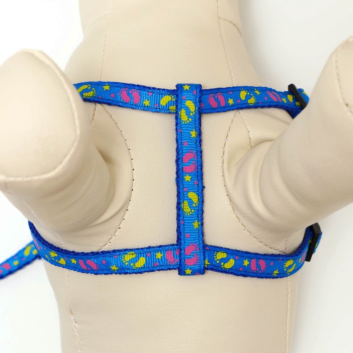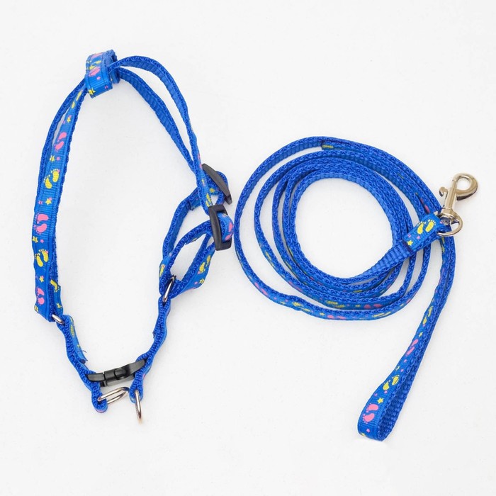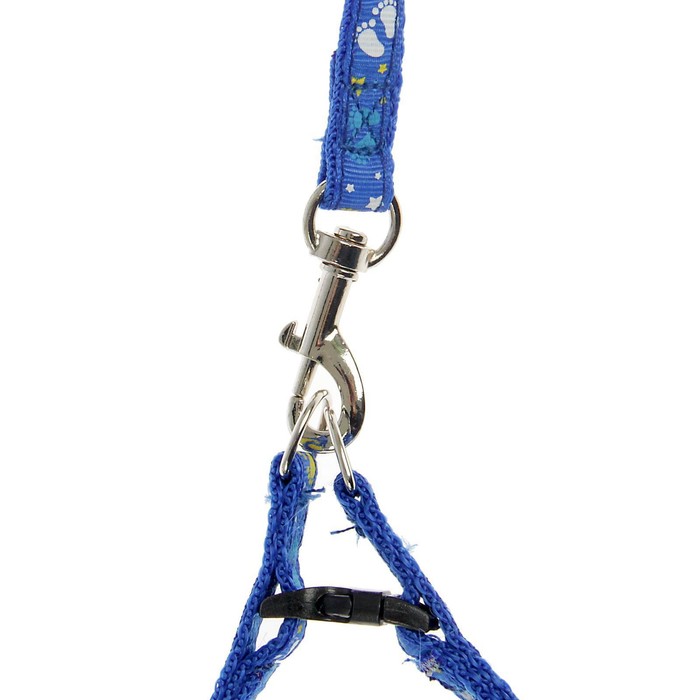 Комплект «Цветные следы», ширина 1 см, поводок 120 см, шлейка 23-35 см, синий 10 фото