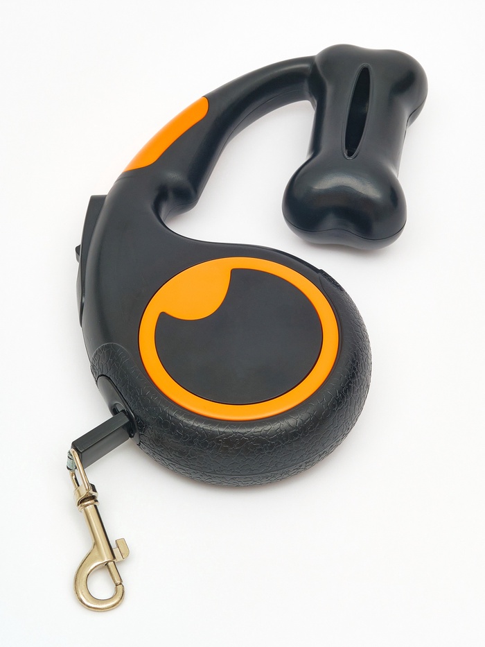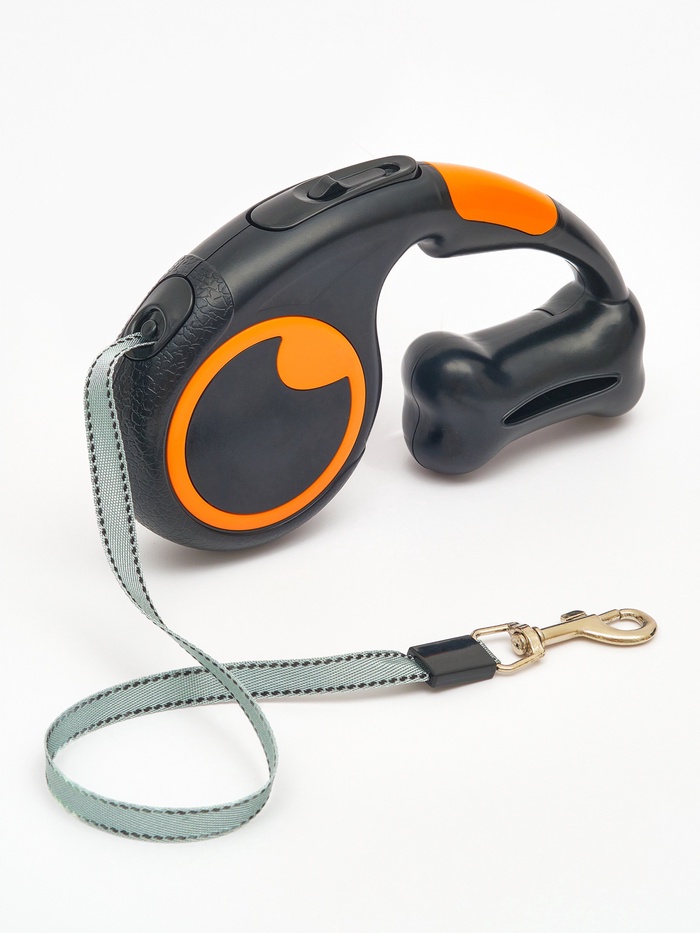 Рулетка - поводок «Косточка», 3 м, с контейнером для пакетов, пластик, чёрная 9 фото