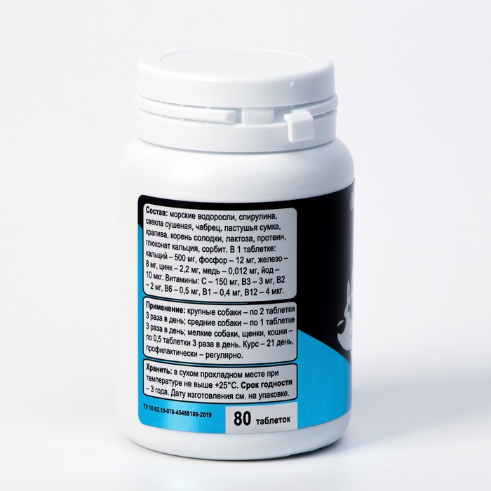 Мультивитамины «Железо» для кошек и собак, натуральная формула, 80 таб 4 фото