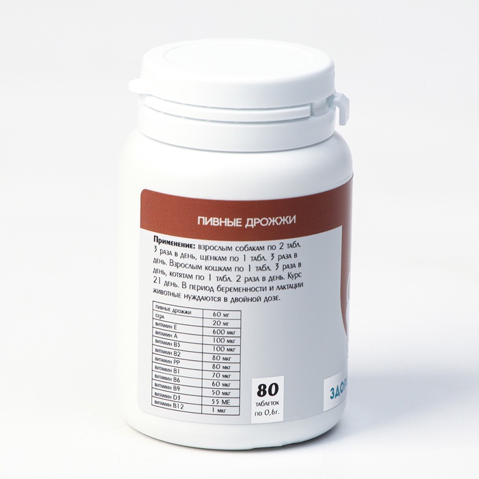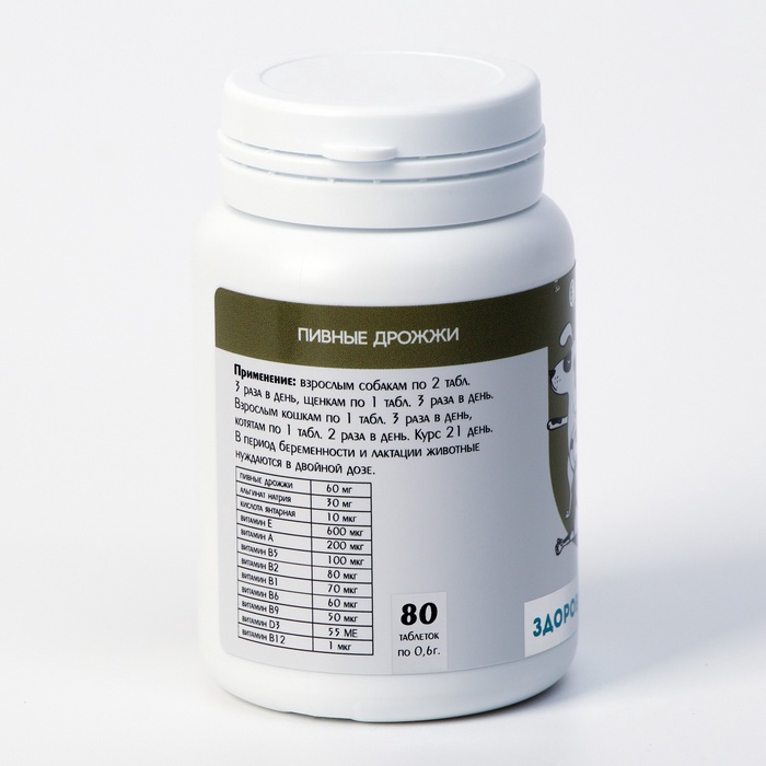 Пивные дрожжи «Здоровые кости» для кошек и собак, с кальцием, 80 таб 4 фото