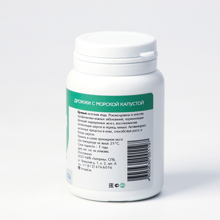Пивные дрожжи «Блестящая шерсть» для кошек и собак, с морской капустой, 80 таб 4 фото