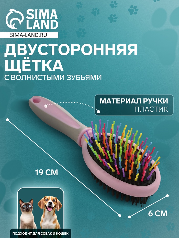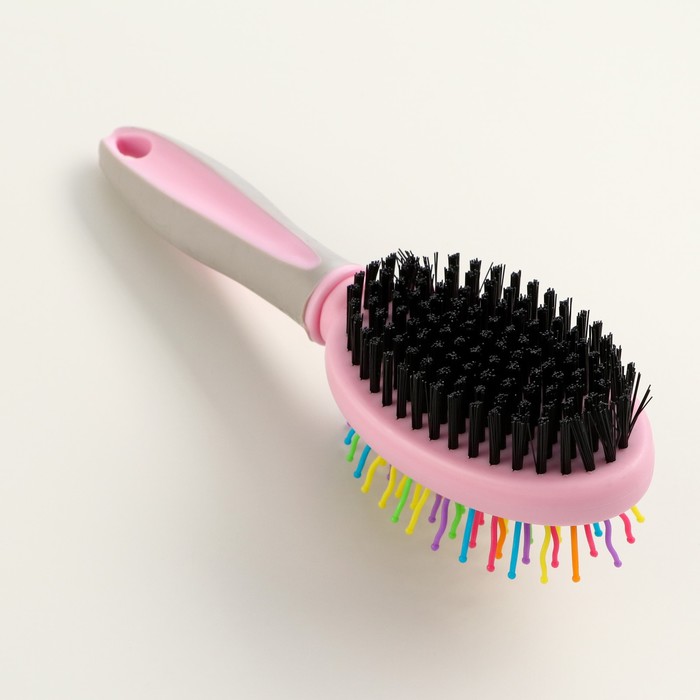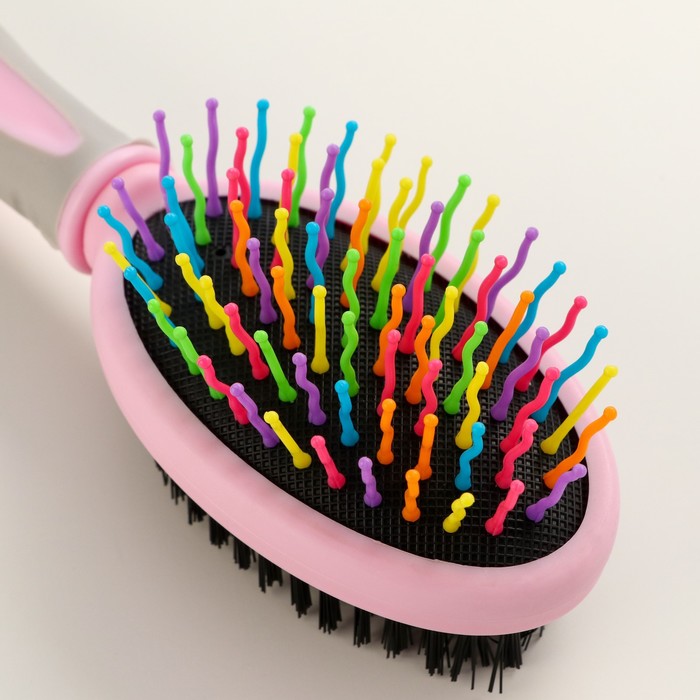 Двусторонняя щётка - расческа с волнистыми зубьями, средняя, 6×19 см, розовая 5 фото