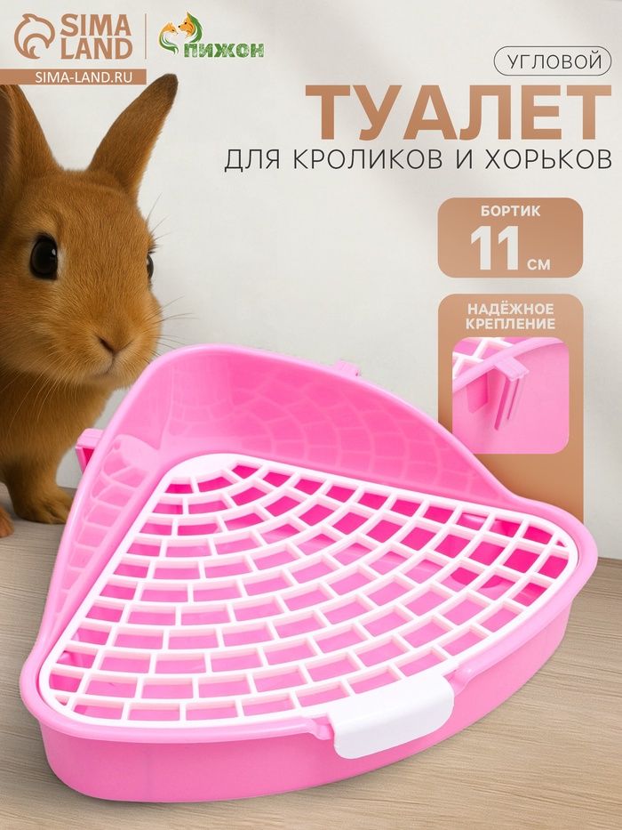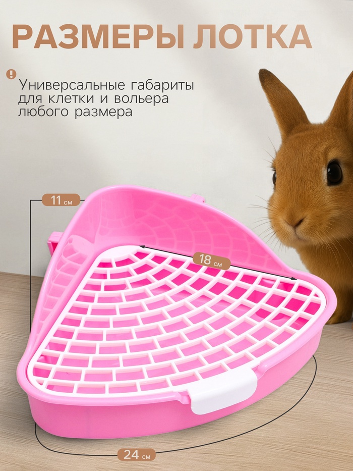 Туалет угловой для кроликов и хорьков «Пижон», 24×18×11 см, розовый 7 фото