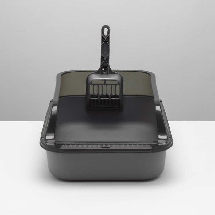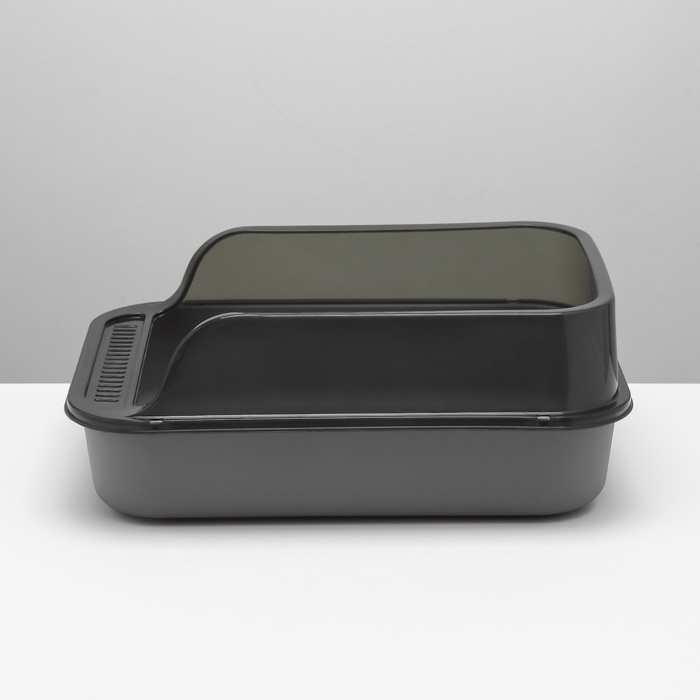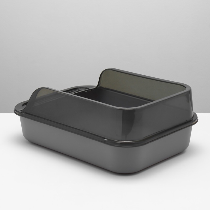Туалет с прозрачными бортами с совком и фильтром, 40×28×16 см, серый 10 фото