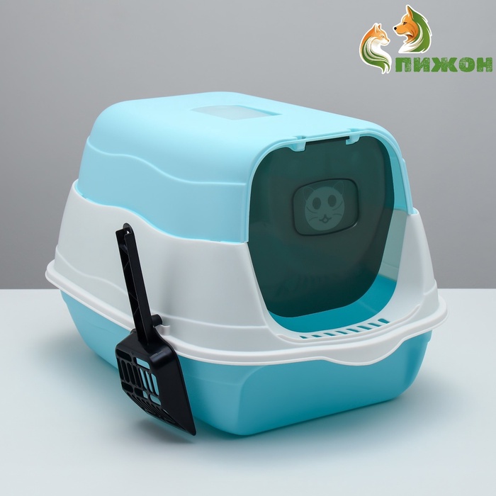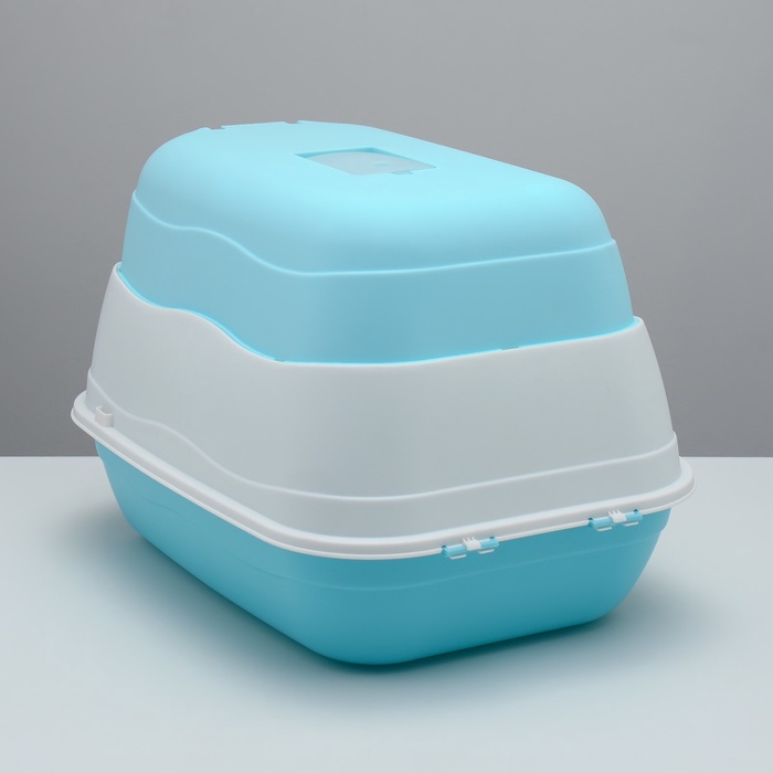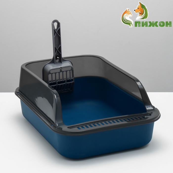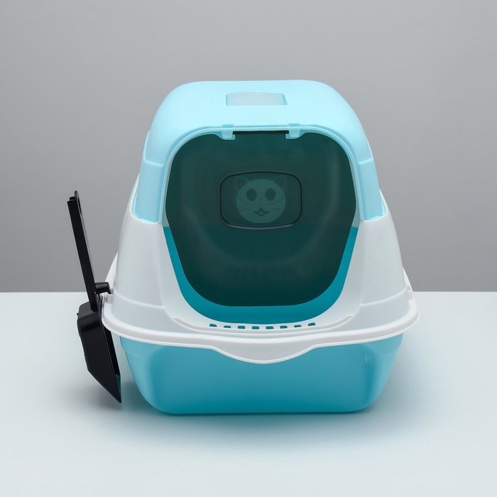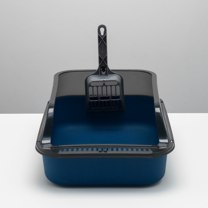 Туалет с прозрачными бортами с совком и фильтром, 40×28×16 см, синий 10 фото