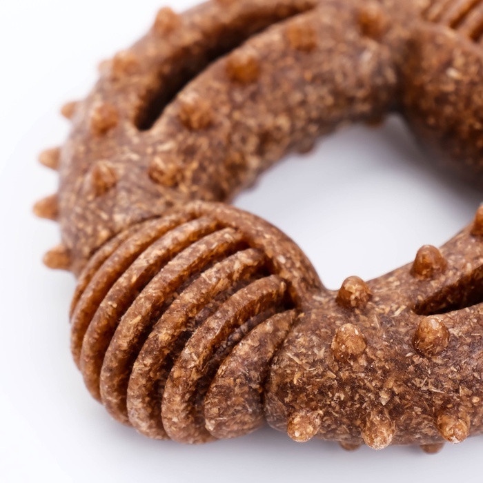 Игрушка для собак «Кольцо с шипами», TPR+Бамбук, 8 см 3 фото