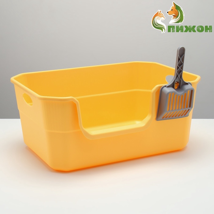 Туалет открытый с боковым входом + совок 50×35×24 см, жёлтый 9 фото