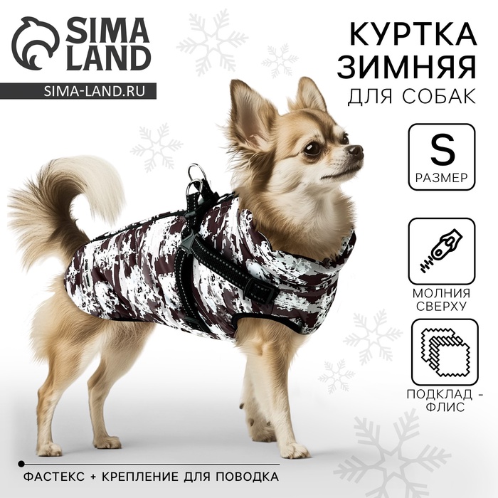 Куртка зимняя для собак «Тёплая зима», камуфляж, размер S, одежда 10 фото