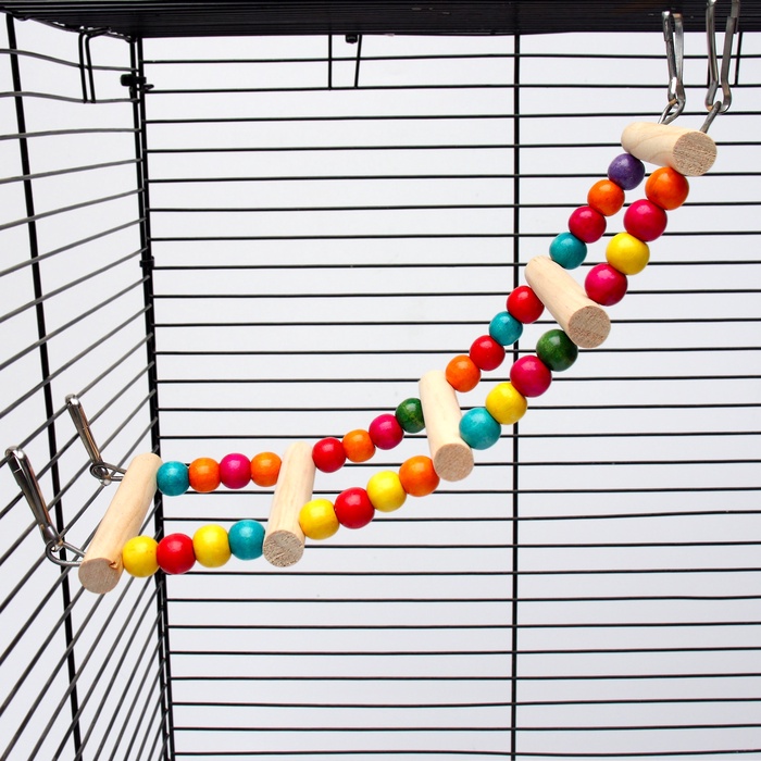 Игрушка для птиц «Лесенка с бусинами», 5 ступеней, 35 см, микс цветов 3 фото