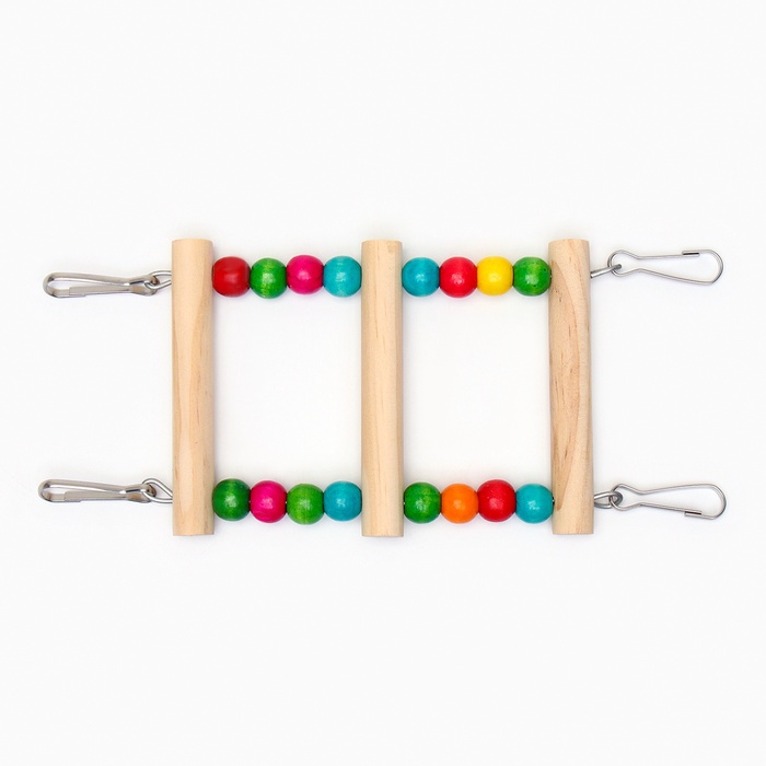 Игрушка для птиц «Лесенка с бусинами» 3 ступени, 23 см, микс цветов 3 фото