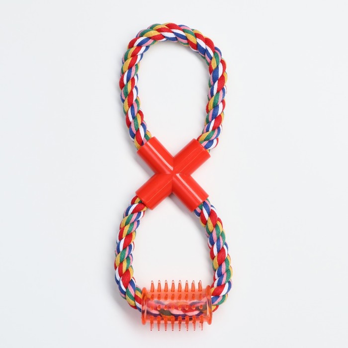 Игрушка тренировочная канатная «Восьмерка с зубочисткой», до 27 см, до 140 г, микс цветов