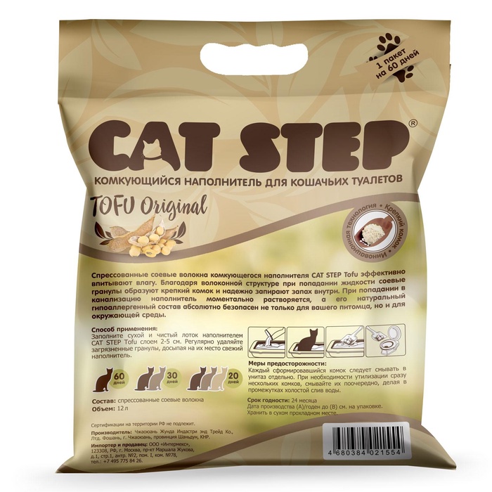 Наполнитель для кошачьих туалетов Tofu Original, растительный комкующийся, 12 л, Cat Step 7 фото