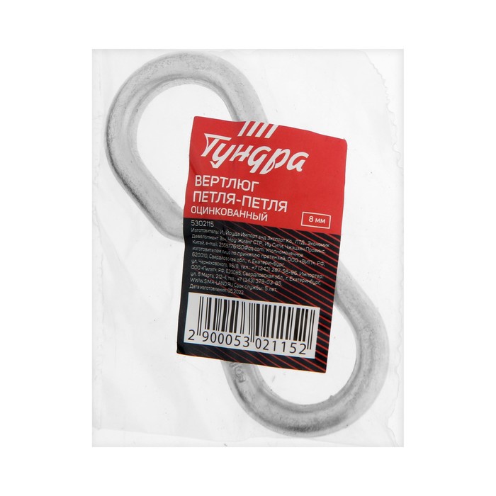 Вертлюг петля-петля ТУНДРА krep, 6 мм, оцинкованный, 1 шт. 2 фото