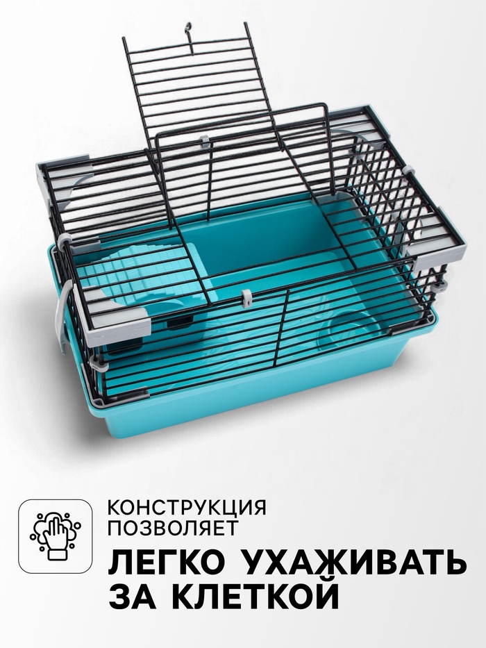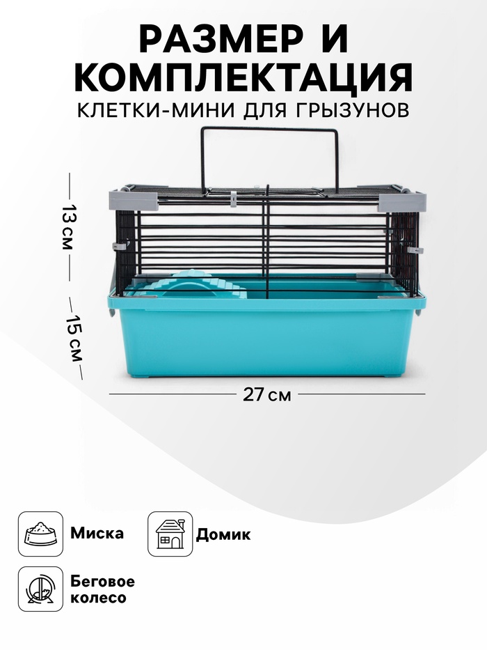 Клетка-мини для грызунов «Пижон» №1, укомплектованная, 27×15×13 см, бирюзовая 10 фото