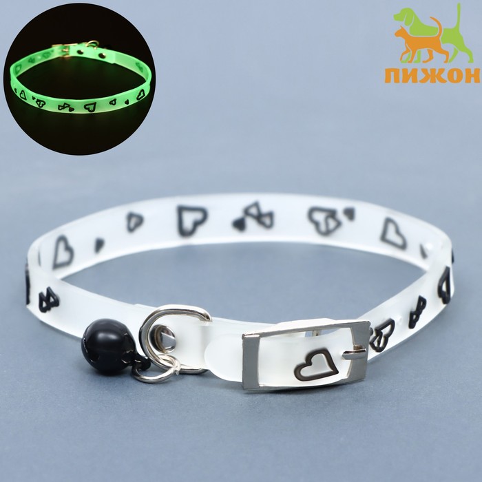 Ошейник «Нежные сердца» (люминесцентный), светящийся в темноте, 30×1 см, ОШ 19-26 см, микс 8 фото
