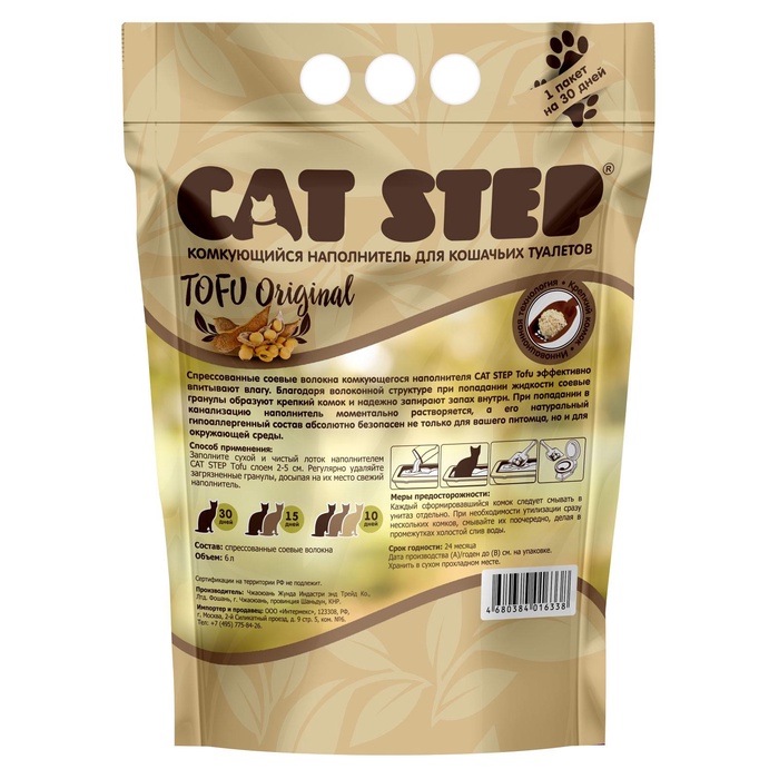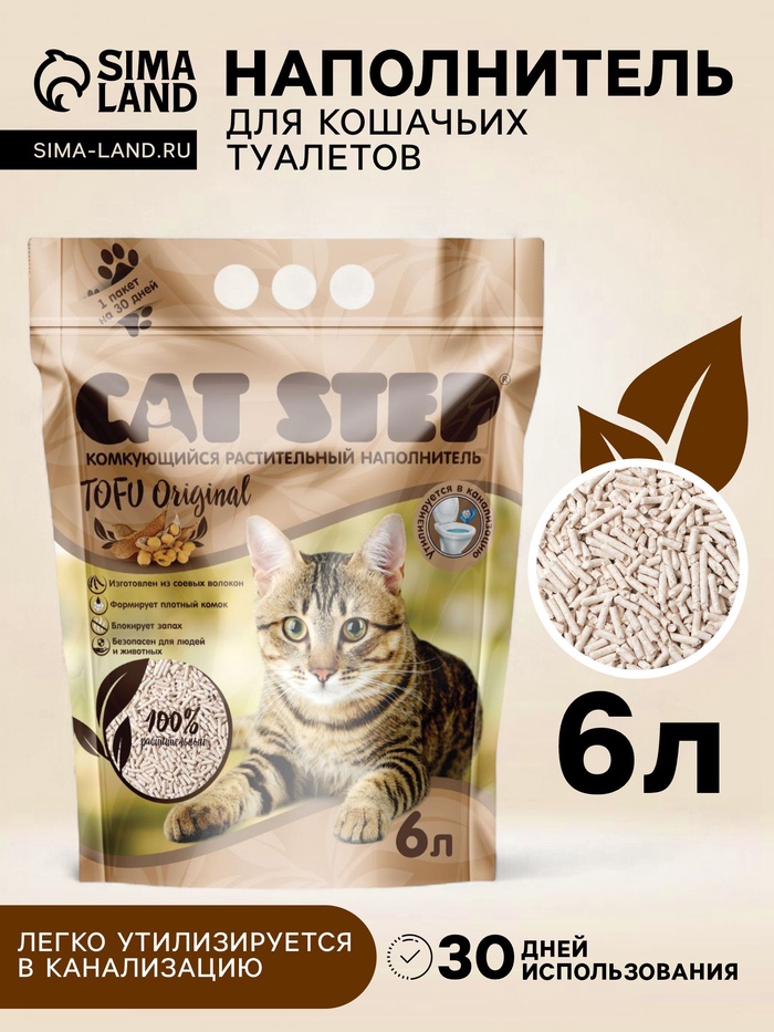Наполнитель для кошачьих туалетов Tofu Original, растительный комкующийся, 6 л, Cat Step 7 фото