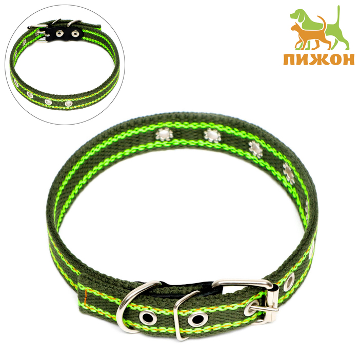 Ошейник брезентовый безразмерный двухслойный, 50×2 см, ОШ 22-45 см, хаки/зелёный 7 фото