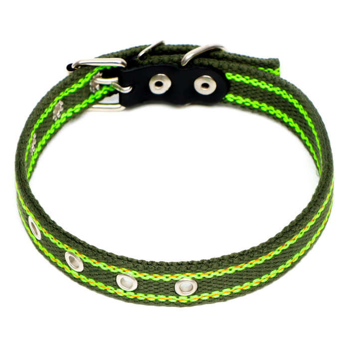 Ошейник брезентовый безразмерный однослойный, 57×2.5 см, ОШ 25-45 см, хаки/зелёный 7 фото
